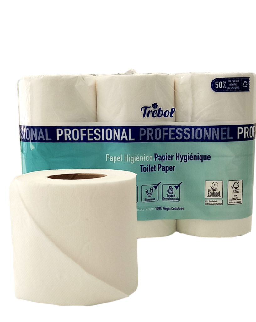 Papel higiénico Ecolab Profesional TREBOL. 12 Rollos, 180 servicios, 2 capas, fácil dispersión. (Fardo de 9 paquetes de 12 rollos)